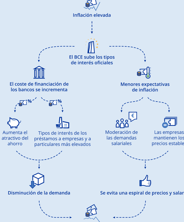 - Los tipos de interés son una herramienta para controlar la inflación.